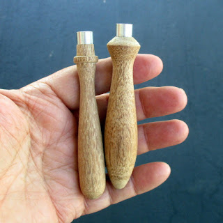 I am making these two handles for Michael down in Louisiana. I got them turned and the threads set. Then I moved on to finishing.