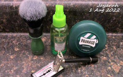 The TSD Iced Lemongrass Shaving Soap lathered well with Jayaruh #432. Two passes and touch ups with the GEM Demaskeene OC Razor with a Personna GEM SS PTFE Blade gave me a close, comfortable shave. After a cold water rinse I finished off with Osage Rub. I am clean, smooth, and refreshed...